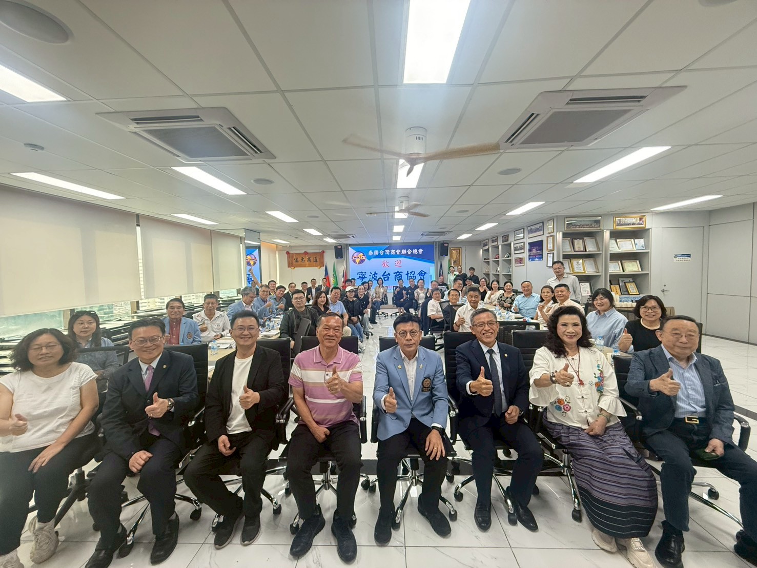 2025年11月25日(二)寧波台商協會拜會。泰國台灣商會聯合總會總會長陳漢川、副總會長:林衢夆、楊源輝、榮譽總會長:林來好、吳榮輝、邱燁、張朝枝、莊智堯、施俊賢、秘書長劉昌奇、副秘書長:林易審、張正杰、顧問林宸頡、諮詢委員邱文正及理事:鄭嘉華、陳福文、王興義、周占富、吳淑慧、詹鎮綱、葉信昌、蕭忠成、劉天富、邱沛滏(代)理事:LHBank副總李永華 、協理蘇冠豪共同出席參加。寧波台商協會由-榮譽會長張金清率團26位訪賓、共20家公司代表參訪企業名單如下: