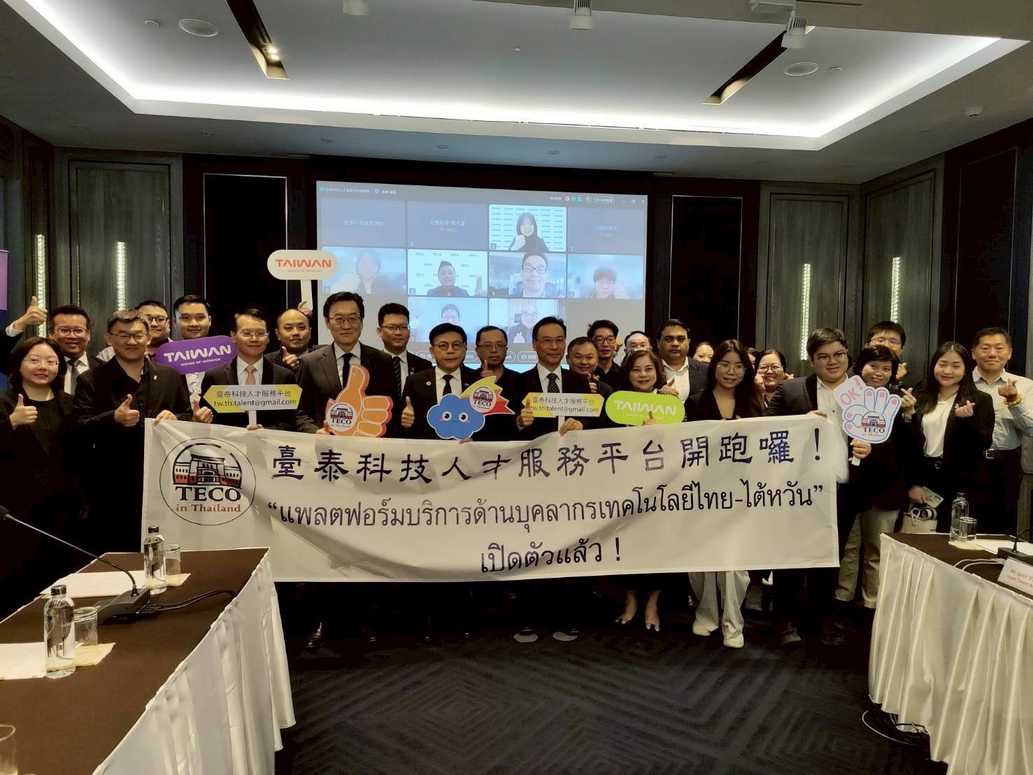 2025年12月02日(二)代表處-台泰科技人才合作聯盟活動。泰國台灣商會聯合總會總會長陳漢川及秘書長劉昌奇出席參加。駐泰國代表處將於12月2日(星期二) 上午9:30在Bangkok Club的31樓舉辦「駐泰國代表處成立台泰科技人才合作服務平台」。這場活動將用中文進行並準備泰文傳譯,也會邀請泰國當地媒體報導,期盼讓泰國各界更了解「新型專班」計畫,也使泰國首都圈及以外的學校瞭解台商優質工作機會,並接洽代表處,有利我們協助台商媒合泰國全國人才,並讓泰國政府正視人才短缺的問題。
