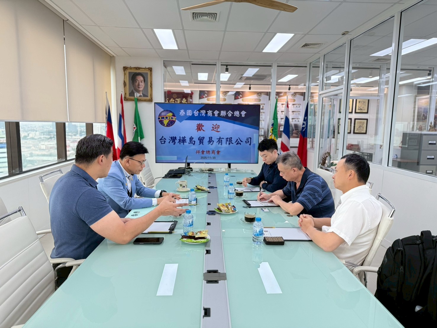 2025年11月10日(一)世界台灣商會青商會拜訪總商會。泰國台灣商會聯合總會總會長陳漢川、榮譽總會長林宇馨、副總會長張桂銘、秘書長劉昌奇、副秘書長:黃啟碩、張正杰、青商會員:郭政宏、陳仕凡共同出席參加。世界台灣商會青商會會長葉禮丞、財務長林育萱、亞洲臺灣商會聯合總會青商會副秘書長林治辰來訪拜會。拜會目的:拜會認識增進情誼,拓展國際商務交流與商機。