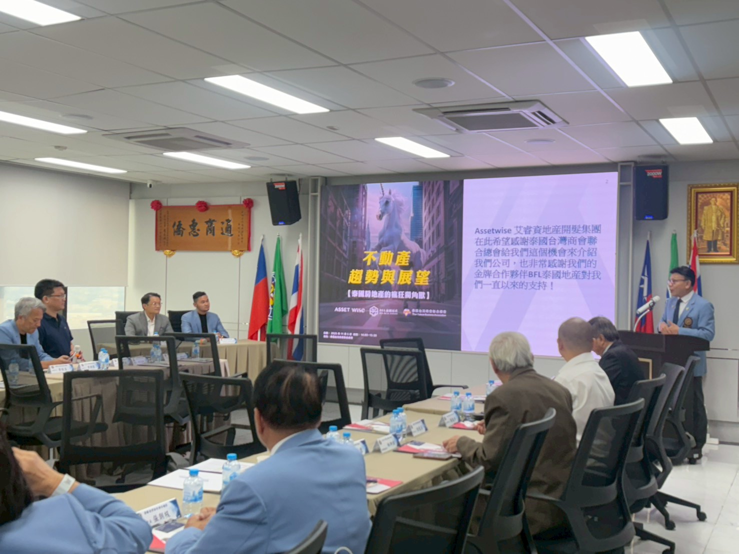 2025年11月05日(三)Asset Wise 泰國地震後的不動產趨勢與合作展望講座 。泰國台灣商會聯合總會總會長陳漢川、永遠名譽總會長劉樹添、榮譽總會長、副總會長、監事、副秘書長、顧問、諮詢委員及理監事成員共同出席。講座內容: 全球經濟因素與市場影響、地震後泰國房地產市場變化與因應策略、投資房產考量與推薦、問答及交流時間。